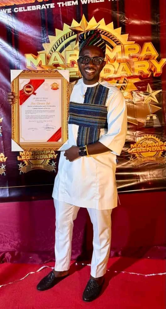The Minister of Information and Civic Education, Chernor Bah, has been honoured as Minister of the Year 2025 by the Marampa Legendary Awards, in recognition of his leadership and national impact.